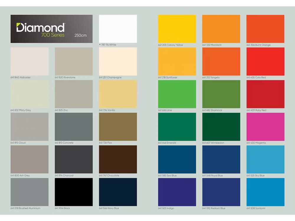 Diamond is a premium coated membrane made entirely in Austria under ISO 9001 and 14001 environmental standards. Known for its exceptional strength and long-term colour fastness, Diamond fabrics are designed to perform under pressure — resisting UV degradation, mould, and temperature extremes.