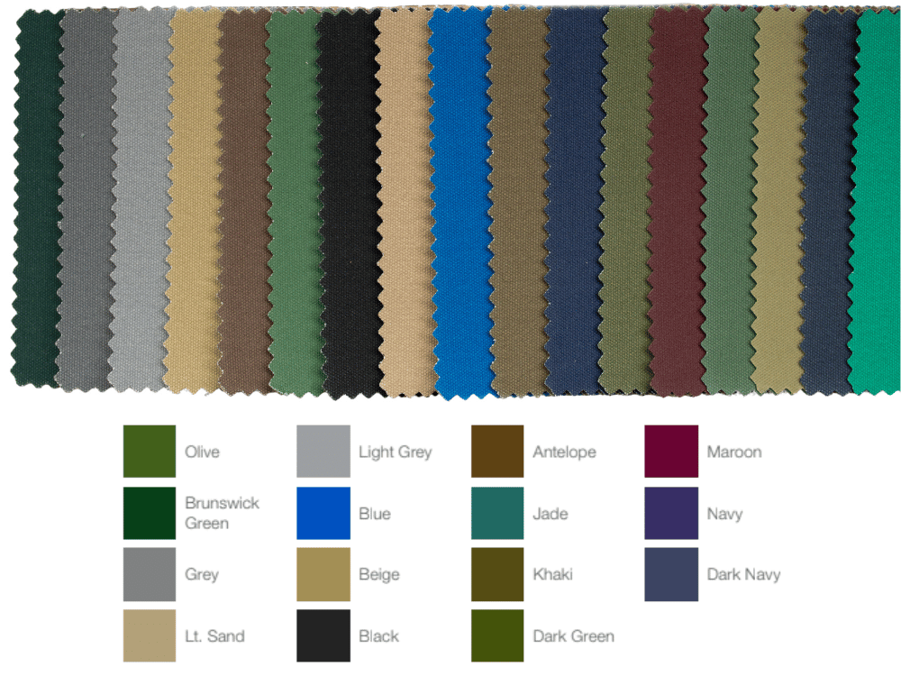 Outdoor poly-cotton canvas offers a balanced combination of natural and synthetic benefits. It provides excellent breathability and comfort, making it ideal for outdoor gear such as tents, awnings, and custom covers. The material resists mould and mildew, delivers strong UV protection, and maintains a more comfortable, less-condensing environment compared to fully synthetic fabrics.